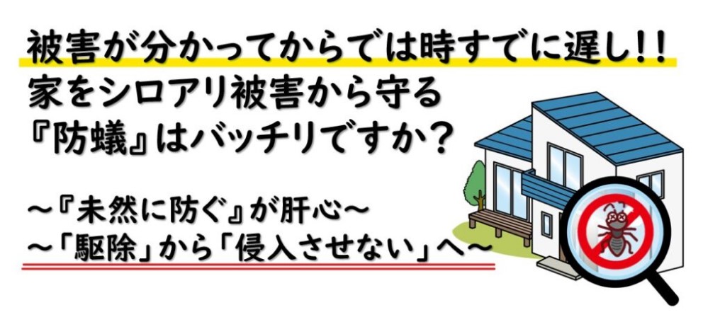今回はおすすめの防蟻対策についてまとめてみました。「高気密高断熱住宅」と「シロアリの好む環境」は悪い意味で相性抜群です。となると、住みやすい住環境をつくることは、比例してシロアリが好む環境になるといいっても過言ではないので、今まで以上に『防蟻対策』が実は重要ということになりますね。いくら耐震がよくても根本からシロアリにやられてしまっては本末転倒です。建物も現在はストック志向になってきていますので、長期間にわたって「防蟻対策」が受けられるのは非常に「暮らしに安心感」をもたらすでしょう。是非住宅性能だけではなく、防蟻対策にも意識を向けていただけたらと思います。