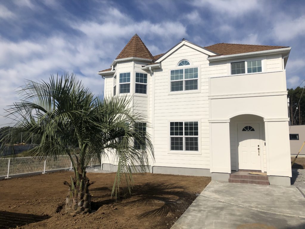 白を基調としたかわいい塔のある輸入住宅が完成致しました。