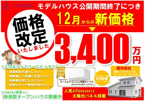体感型モデルハウス販売-価格改定-株式会社 田山建設