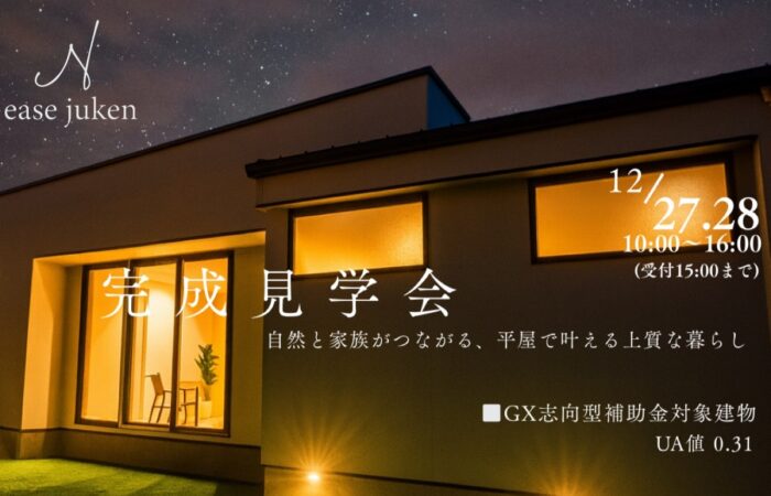 下記日程にて神栖市で平屋建物の完成見学会を開催いたします