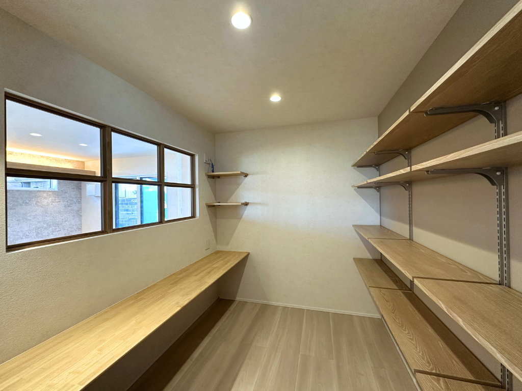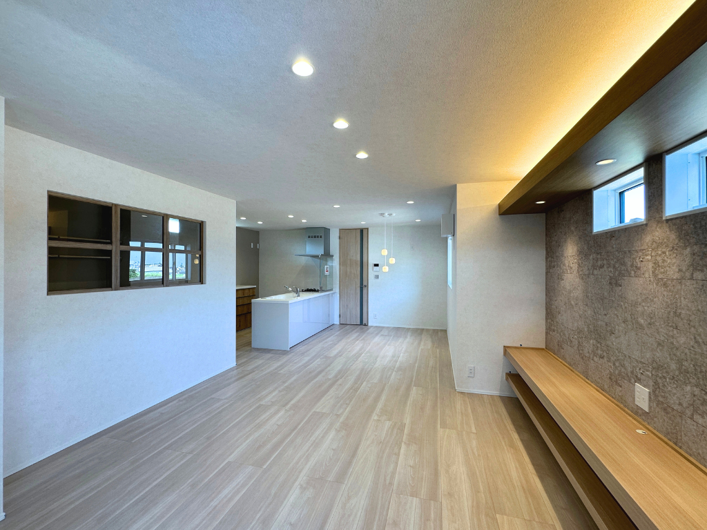 20.7帖の広々LDKに、リビングやキッチンを見渡せる書斎は、親子で使える共有スペース。読書や仕事、宿題も、自然と会話が生まれる距離感が魅力の空間になっています。
