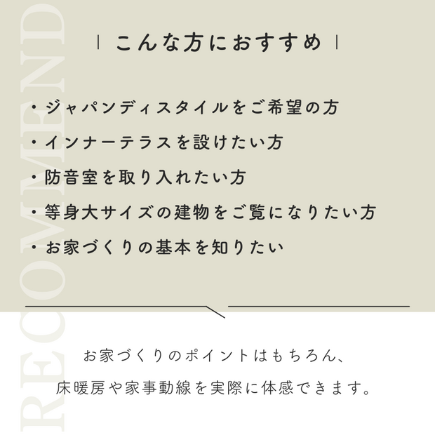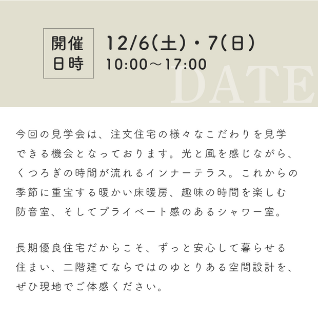 今回の見学会は、注文住宅の様々なこだわりを見学できる機会となっております。