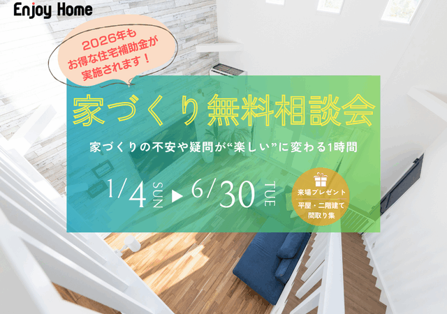 2026年も国の住宅補助金が実施されます。お得な補助金を活用して、快適で高性能な家づくりを始めてみませんか。補助金の詳細はスタッフまでご相談ください。