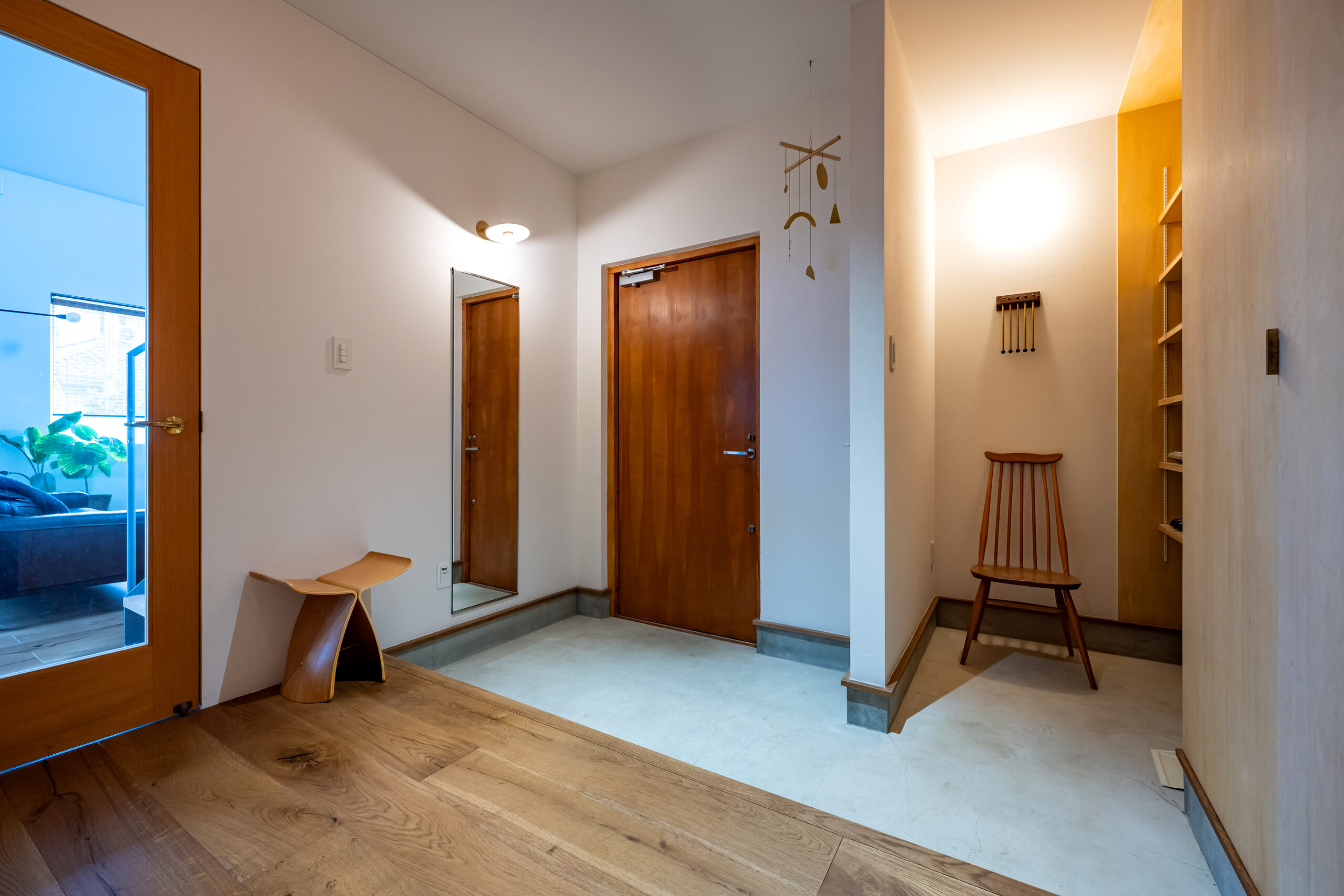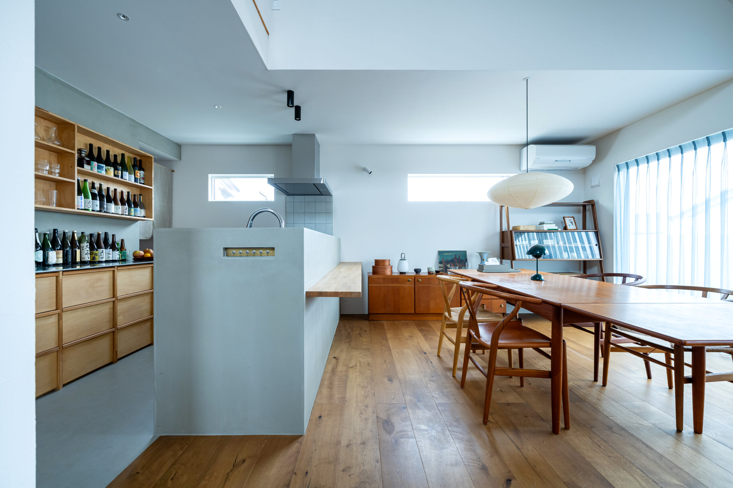 上品でシンプルを目指した建物。室内に入った瞬間、思わず見渡してしまう美しさ。凛とした空気に包まれながらも、どこか懐かしい落ち着きのある空間となりました。また随所に配置されたお客様こだわりの家具がまるでずっとそこにあったかのように馴染み、建物全体の空気感を作っています。
