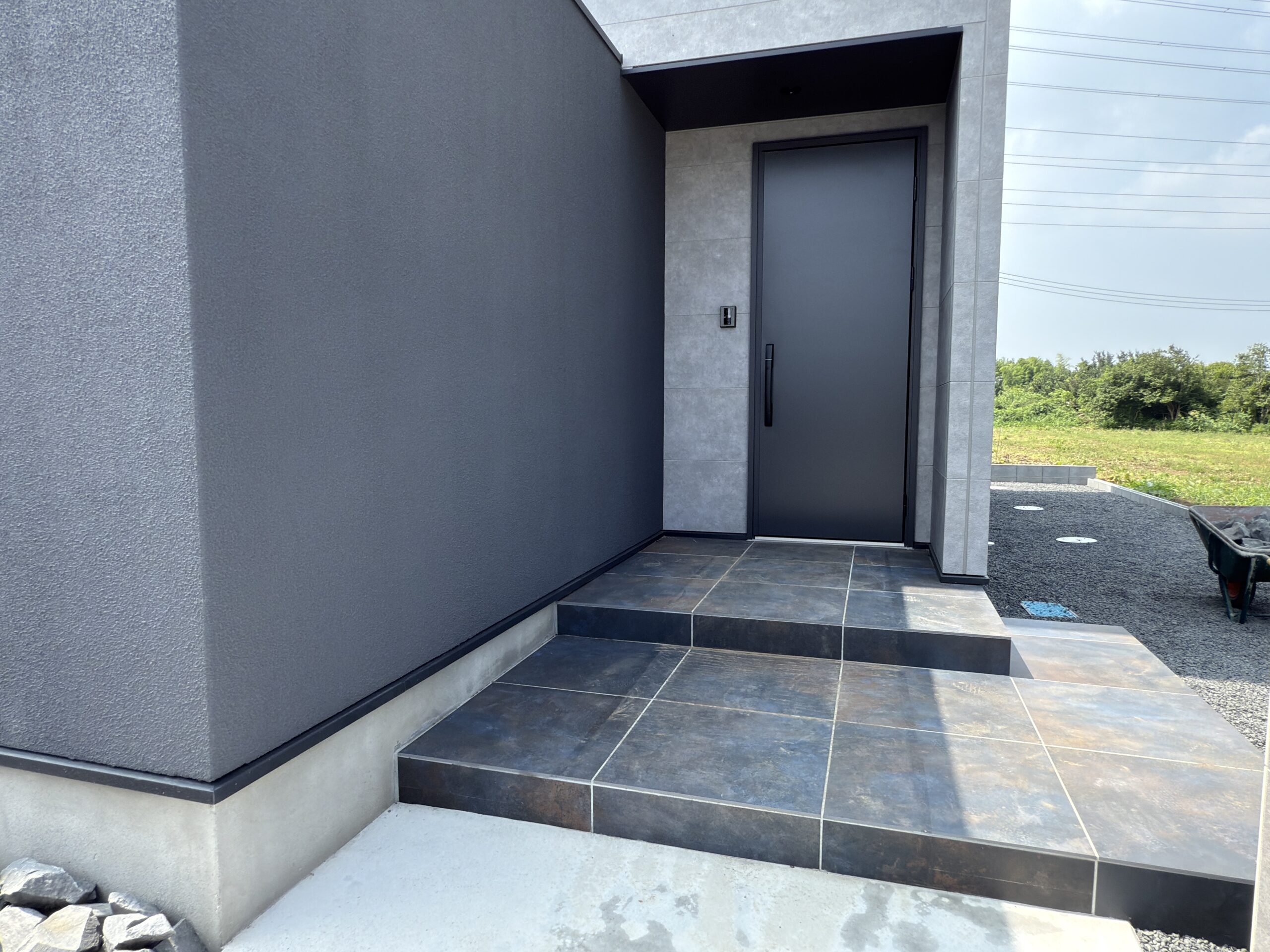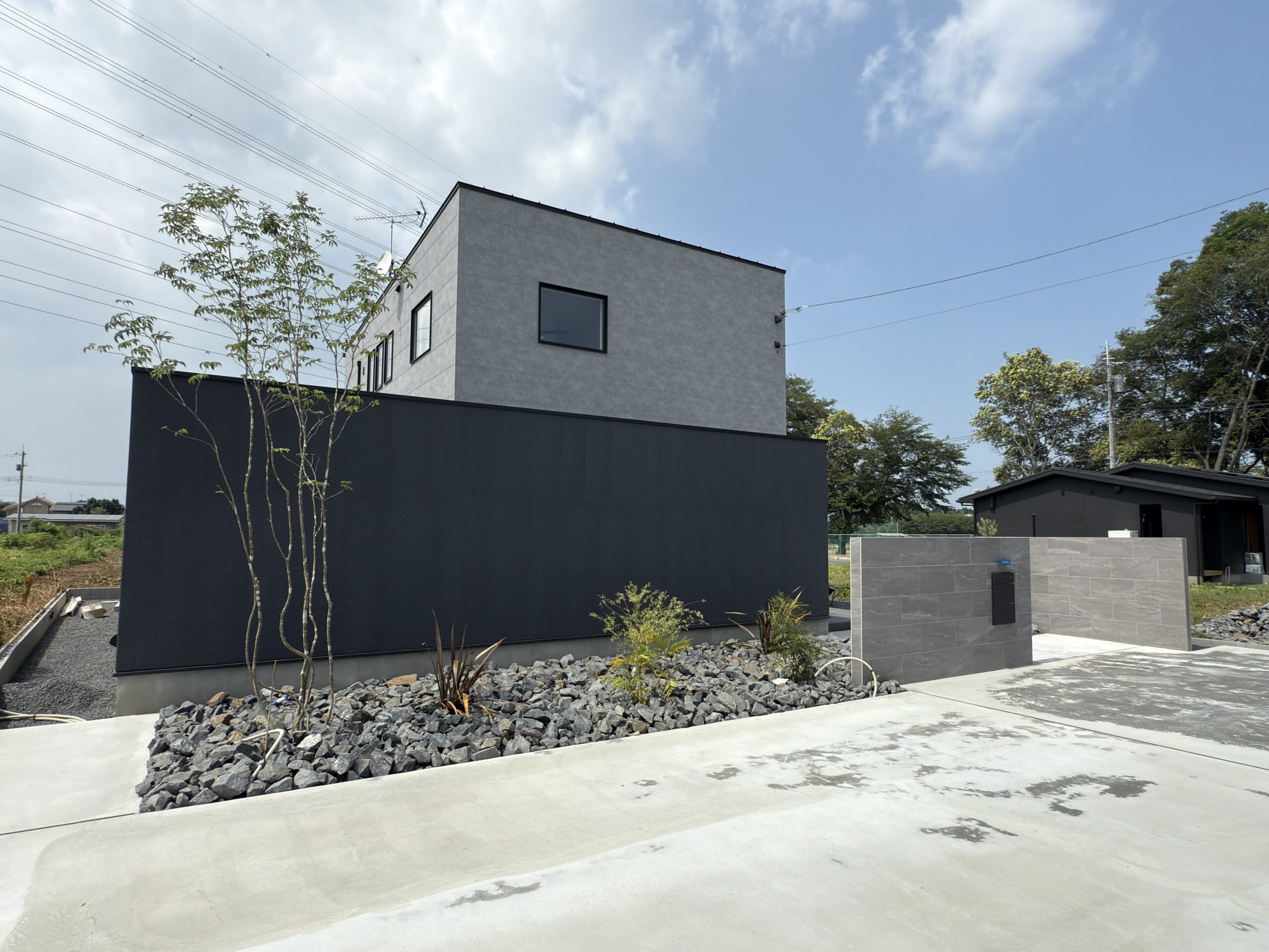 外塀はブラックのジョリパット仕上げに。グレーとブラックのコントラストが美しく、シャープでモダンな印象がさらに際立ちました。