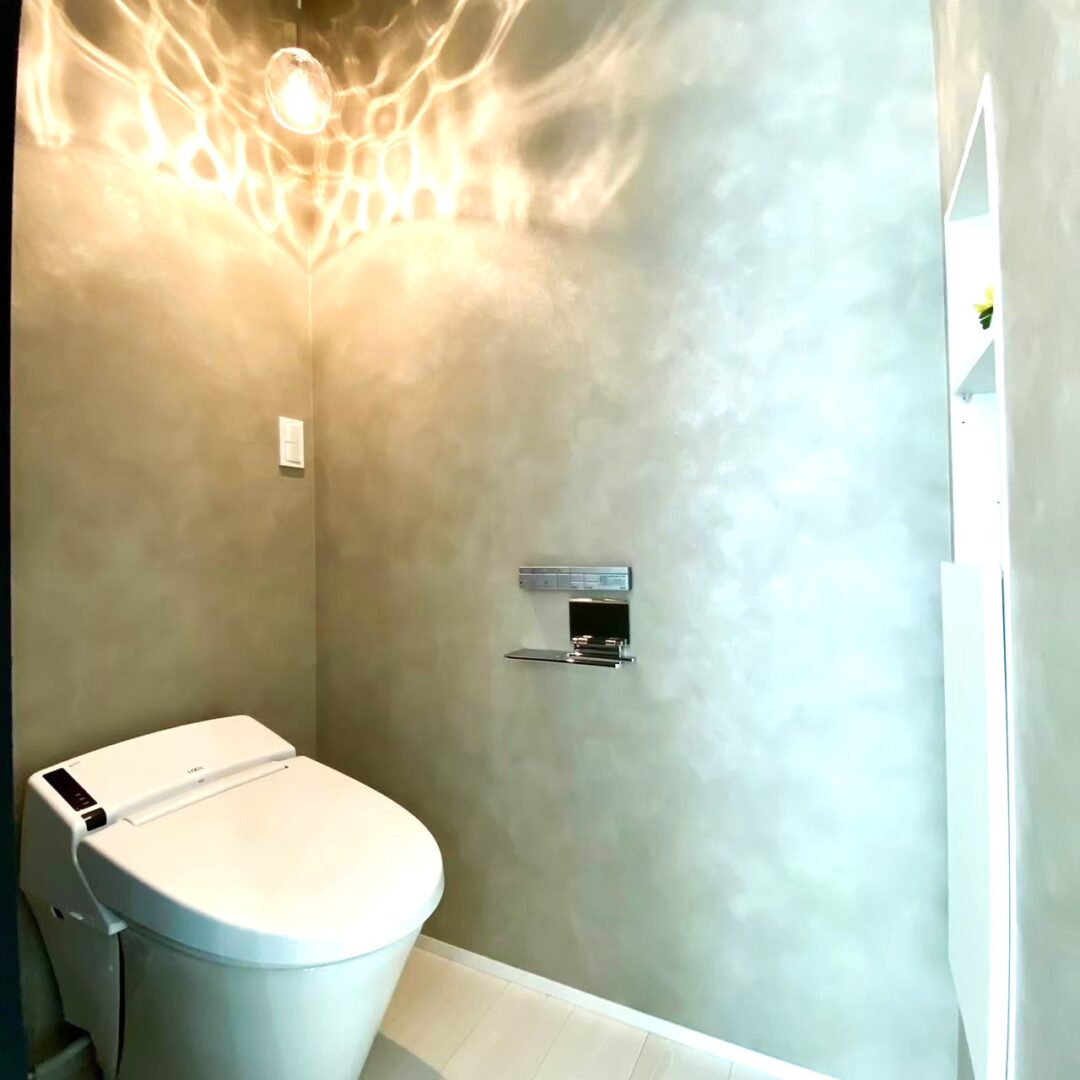 キラキラしたタイルでキュートで高級感のある仕上がりにし、玄関ドアの横に光を取り入れる工夫