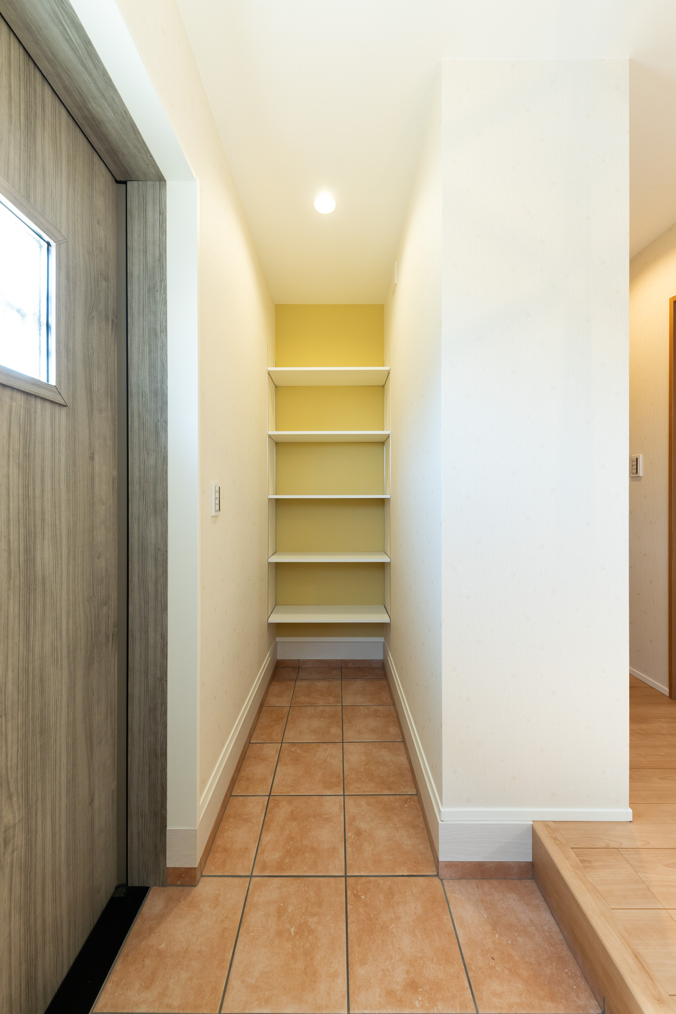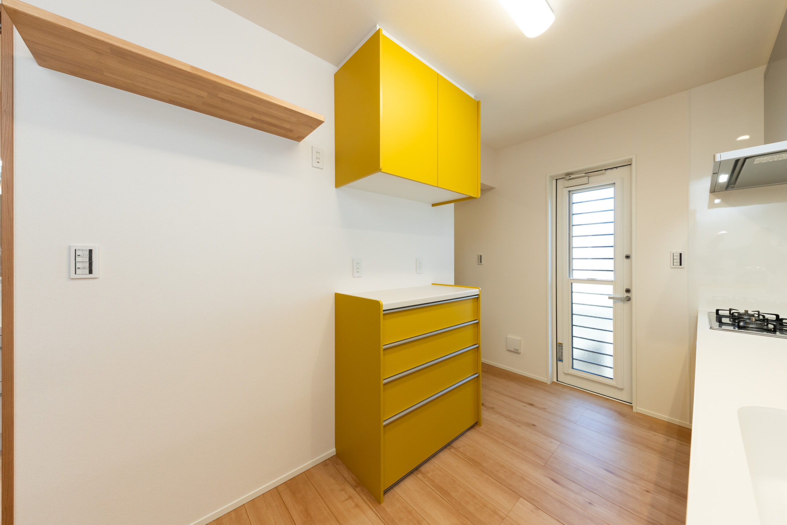 すべての生活空間がワンフロアで完結する機能性と快適性を兼ね備えた平屋の住まい。玄関を入ってすぐの位置にトイレと玄関収納を配置し、帰宅後の動線がスムーズに。シューズやコート類などもすっきりと片付く設計です。LDKは開放的で、家族が集う心地よい空間に。キッチンのすぐそばにはパントリーを備え、日用品や食品の収納が充実しています。将来を見据えたフラットな暮らしと、暮らしやすさにこだわった設計が魅力のお住まいです。