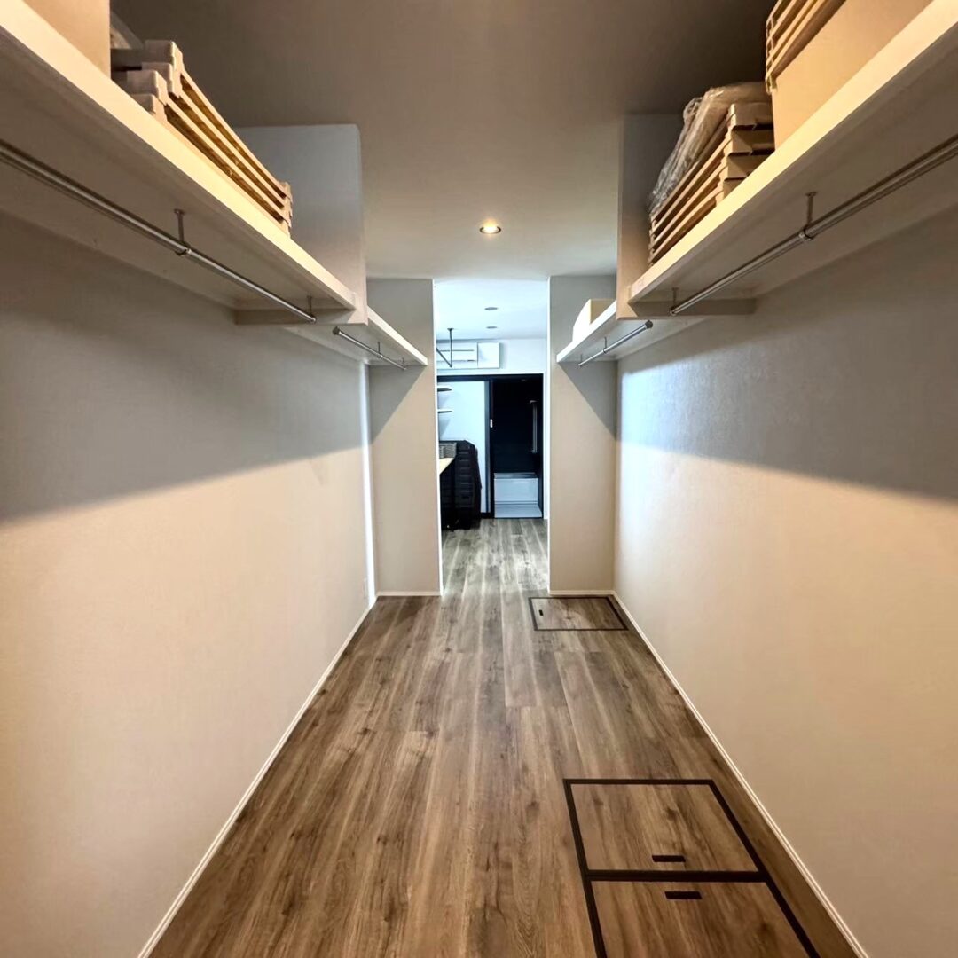 ランドリー、バスルームにつながる大容量ファミリークローク