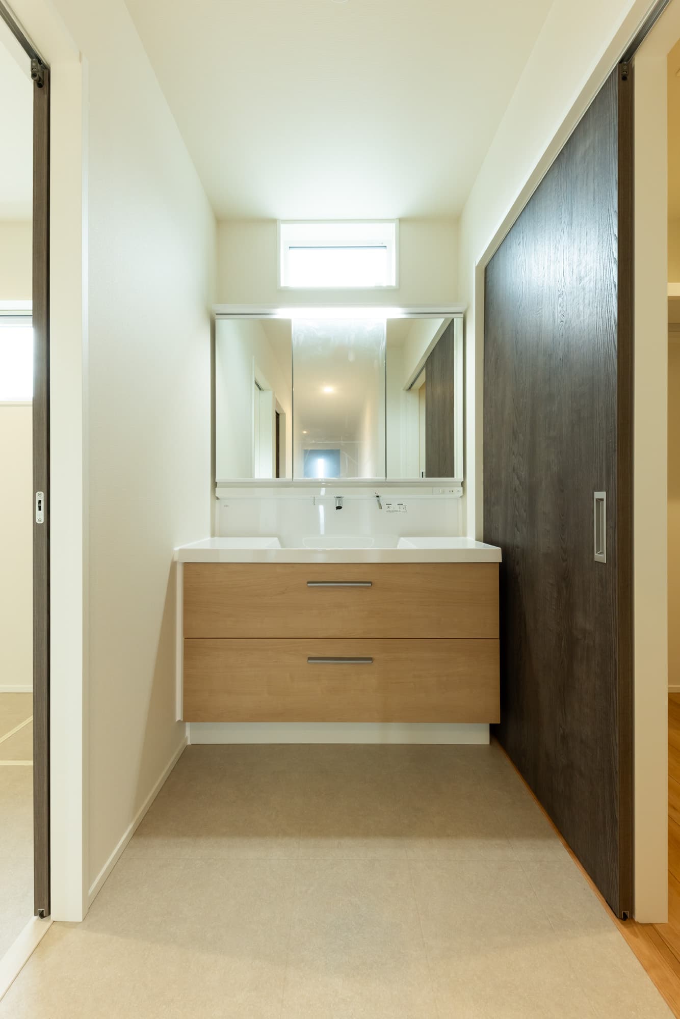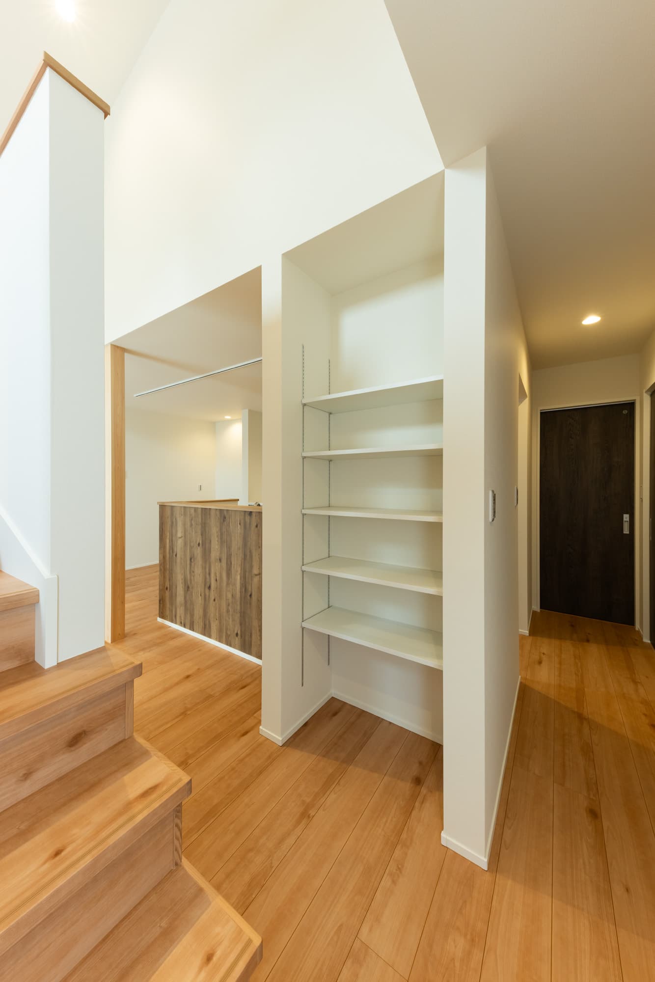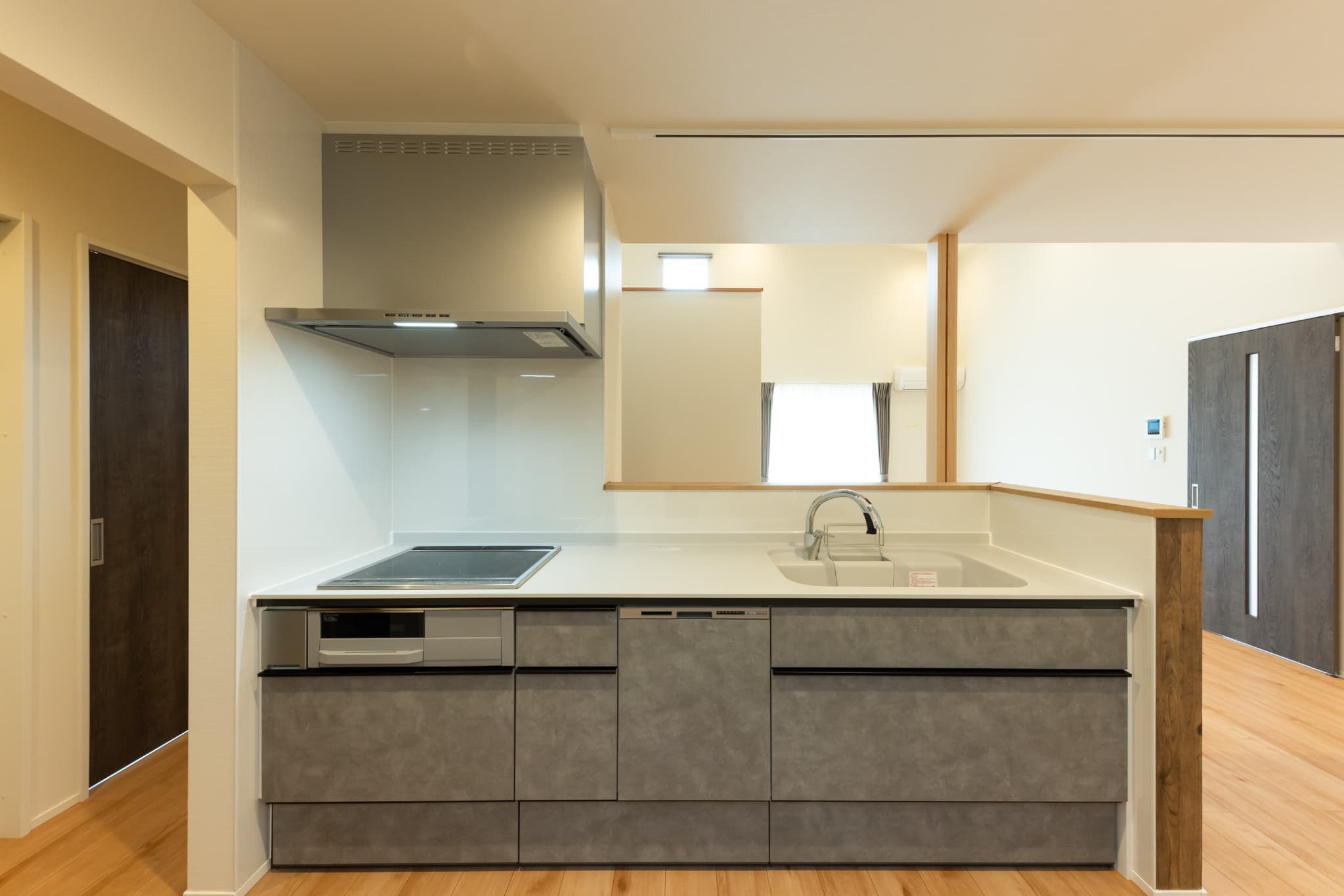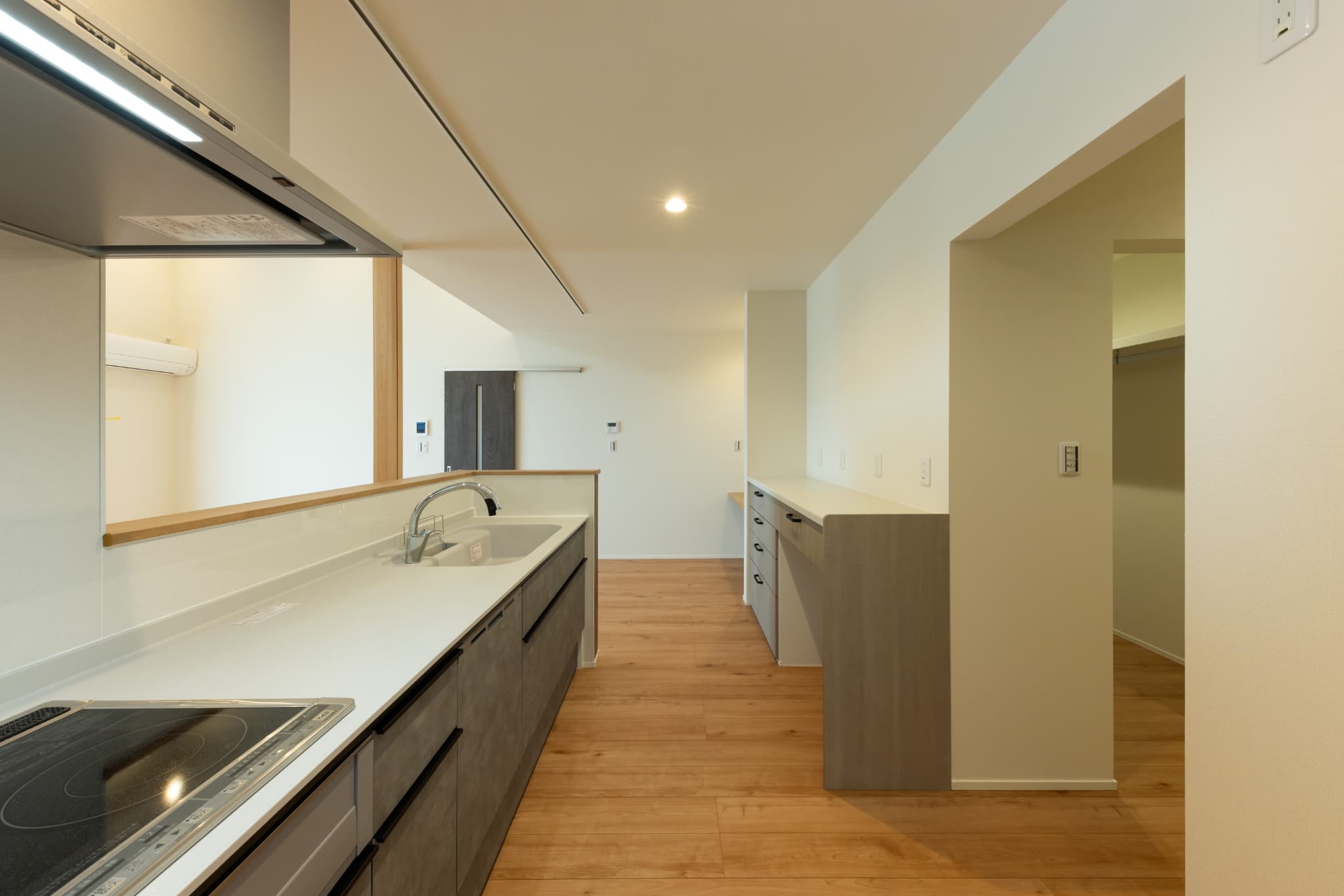 南向きのリビングには大きな窓から陽光が差し込み、明るく開放的な空間が広がる平屋のお住まい。LDKを中心に、生活動線と家事動線がシンプルに設計されており、キッチンから洗面、脱衣室、ランドリールームへと一直線につながる間取りが、日々の家事を効率的にサポートします。家族それぞれの個室に加え、お子様用の部屋もゆとりをもって配置。衣類や生活用品をひとまとめに収納できるファミリークローゼットを設けることで、室内はいつでもすっきりと整います。また、床下収納やパントリーなどの収納も充実しており、使い勝手の良さと暮らしやすさを両立。将来を見据えたシンプルで機能的な住まいが完成しました。