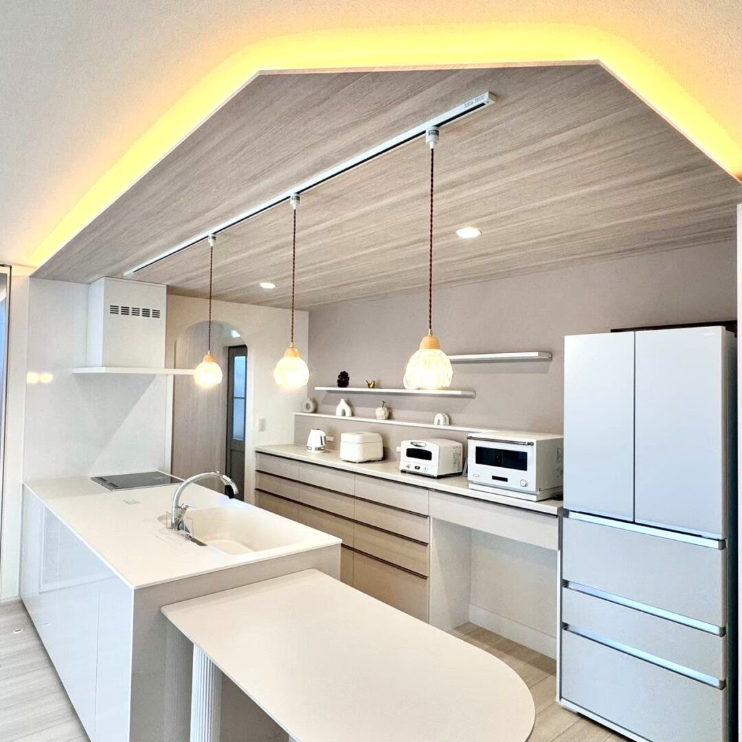 すてきな間接照明が映える白いキッチン