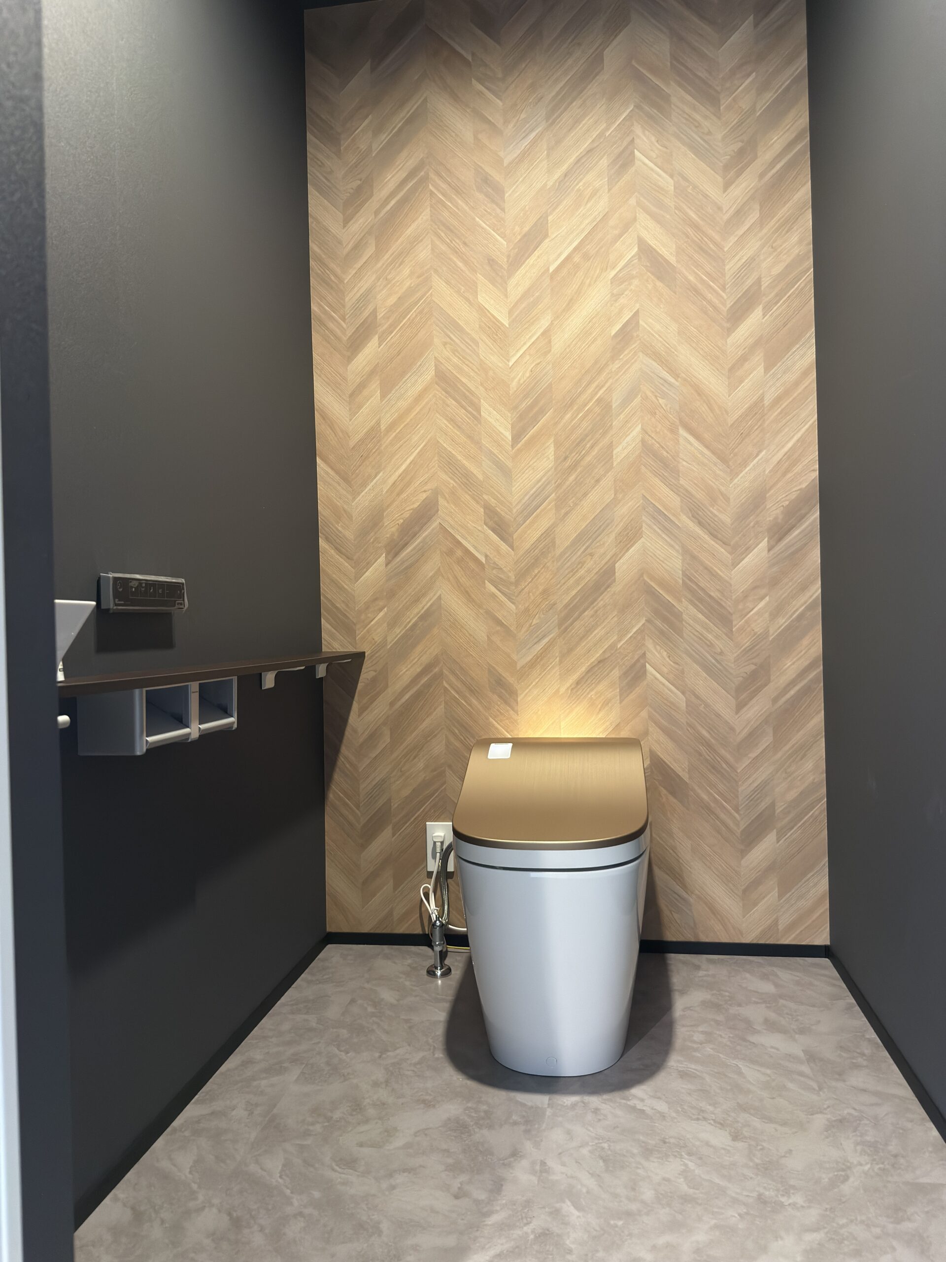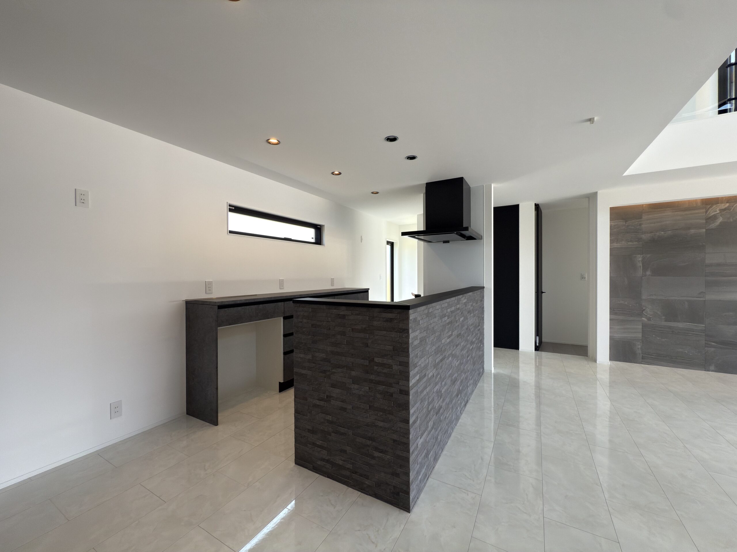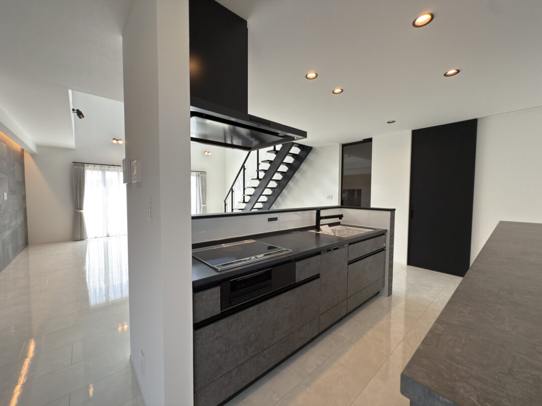 お施主様が選んだ白・黒・グレーの潔い配色は、シンプルでいて力強さと上質さが漂う空間を造り出しました。