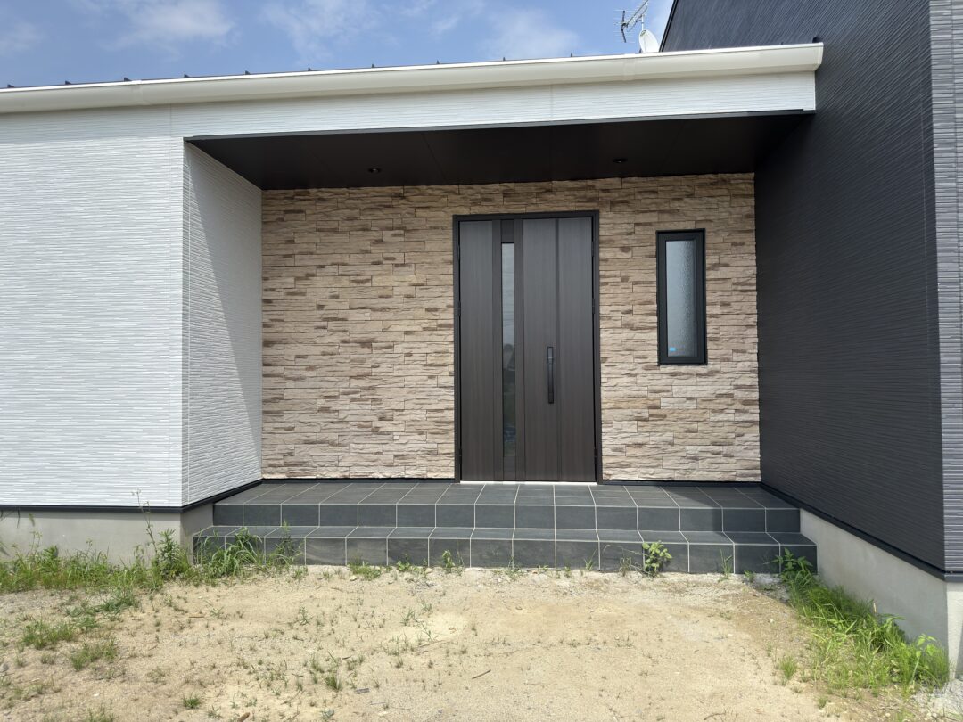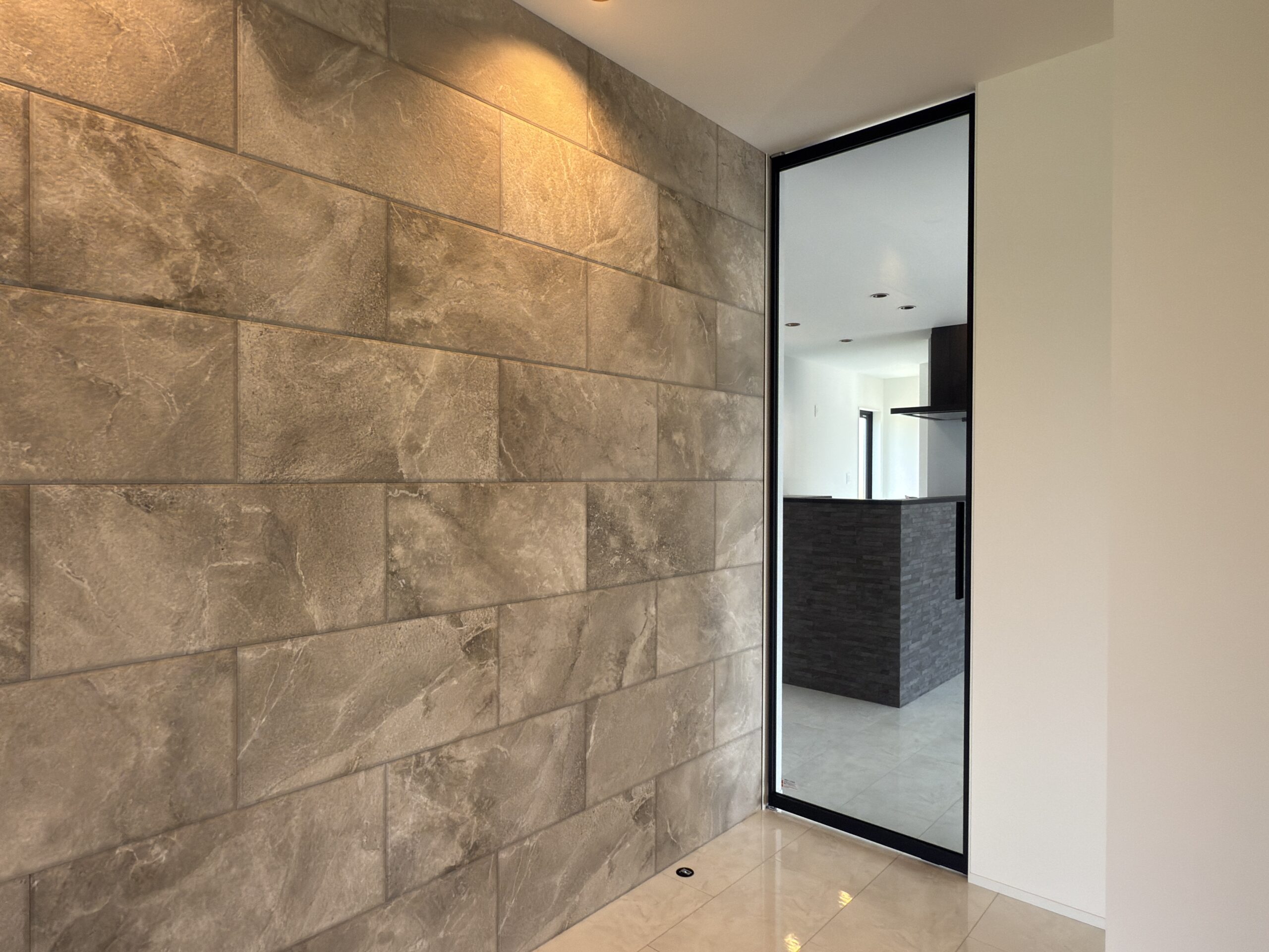 玄関まわりにはアクセントとして「ラグナロック」を採用し、岩肌のような力強い凹凸感が住まい全体に個性と重厚感をプラスしています。シンプルでありながら存在感のある佇まいが魅力です。