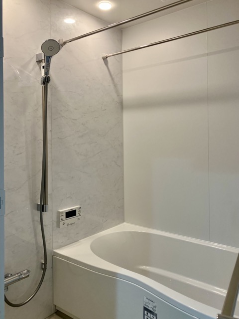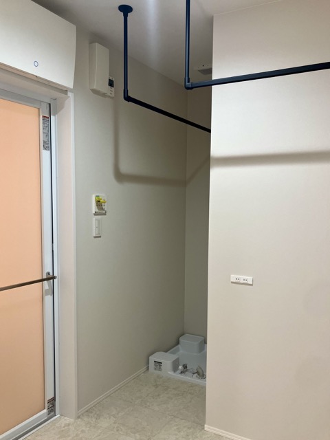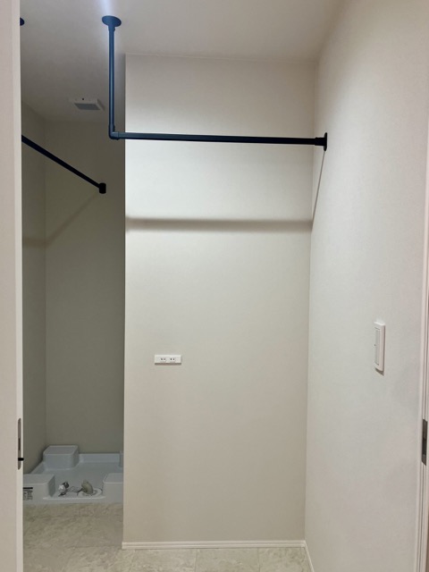 限られたスペースを有効活用するため、脱衣所には2本のランドリーパイプをL字型に設置。 洗濯完了から「干す」までの動作が最短距離で完結し、毎日の家事負担を軽減します。 たっぷり干せるので、外に干せない時期や共働き世帯の強い味方。 機能性と効率を両立させた、こだわりのサニタリー空間です。
