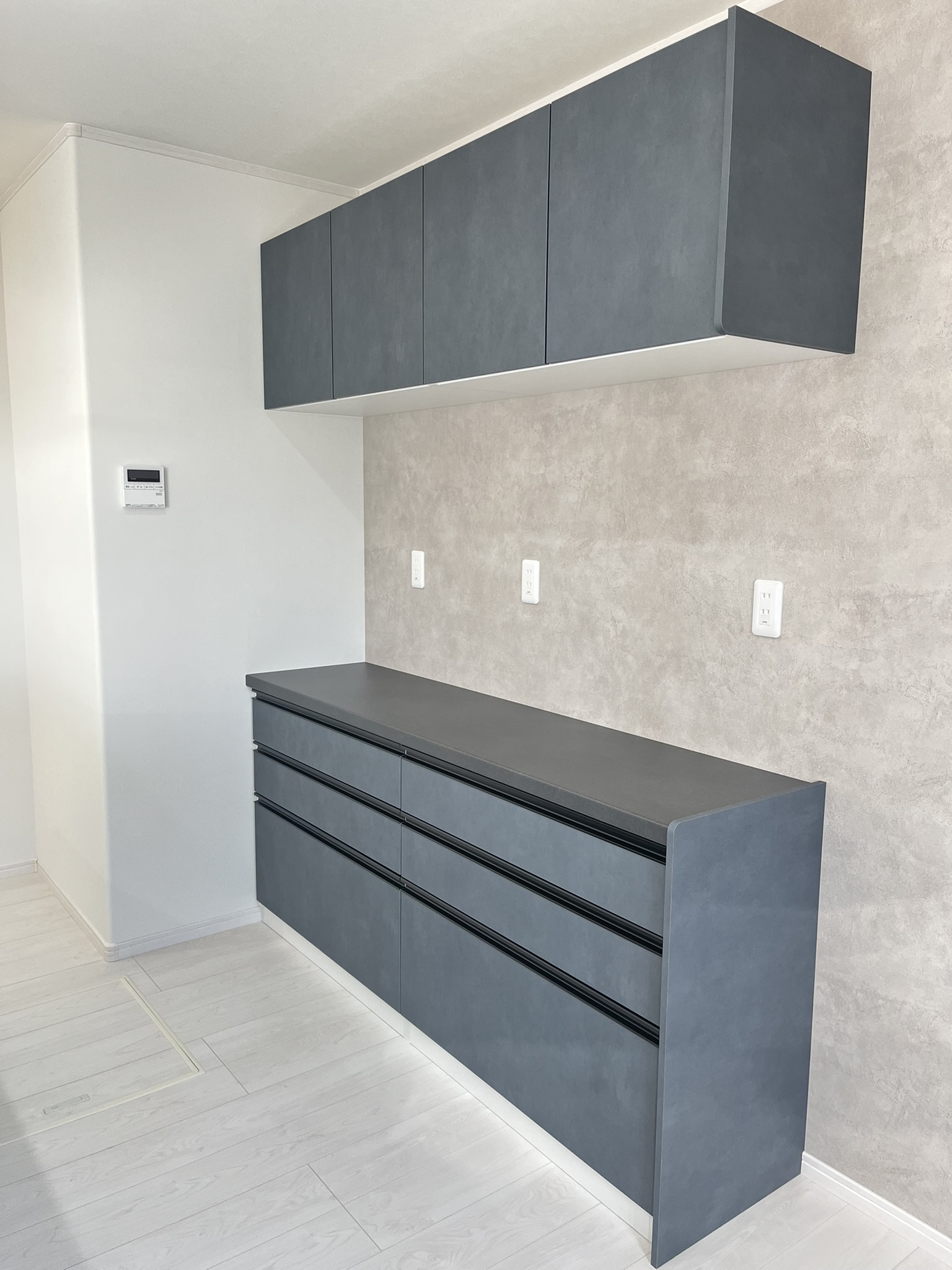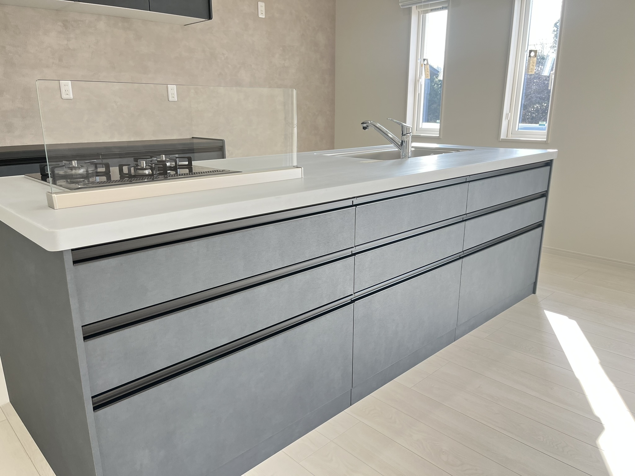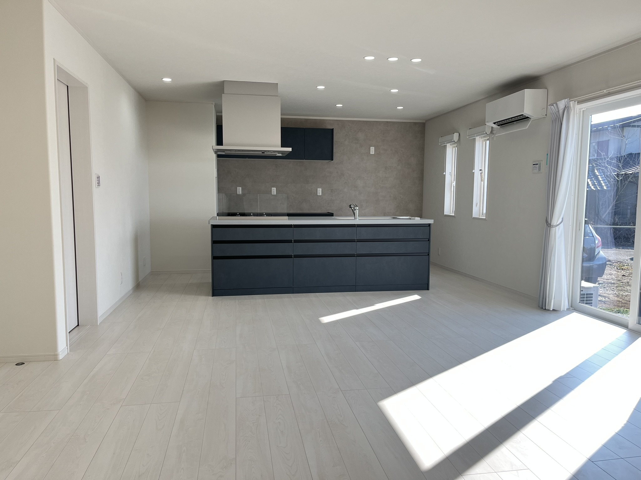 こだわりのアイランドキッチンはお部屋との一体感がありお料理しながらも会話がはずみます♪左右からの行き来もしやすいので、家族もお手伝いがしやすい!リビング収納も兼ねておりリビング側が全面収納♪サッとしまえて片付け上手♪