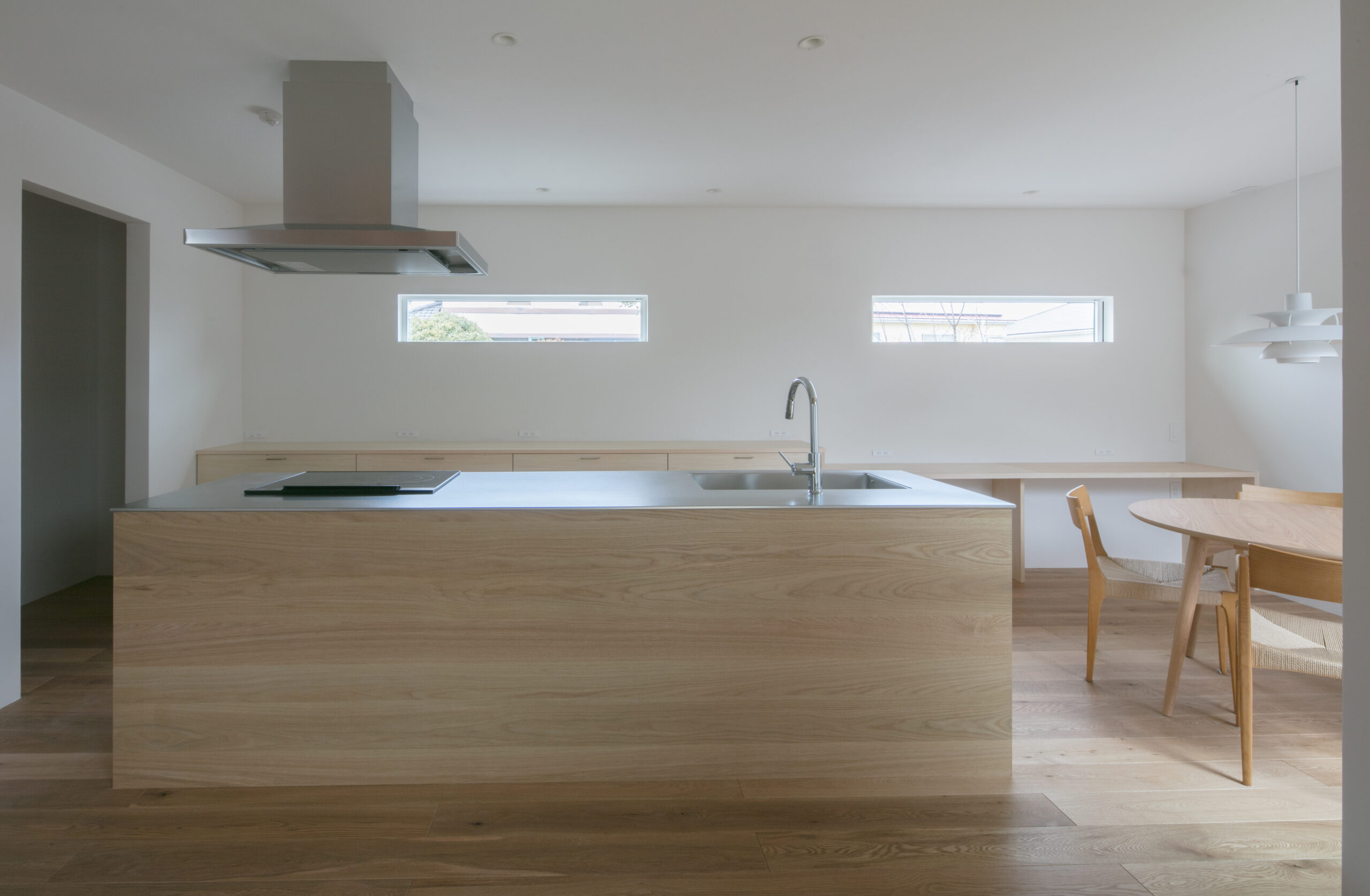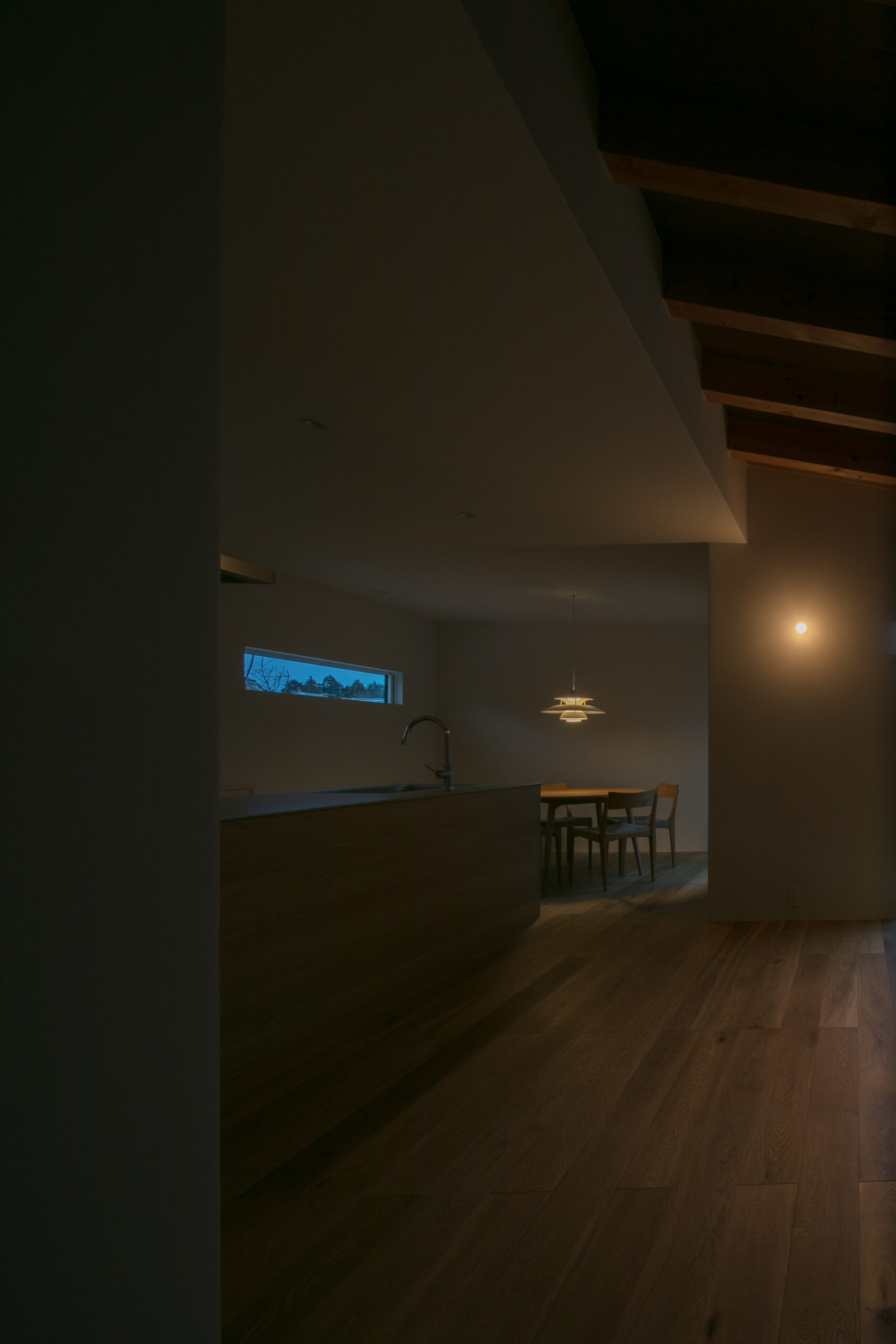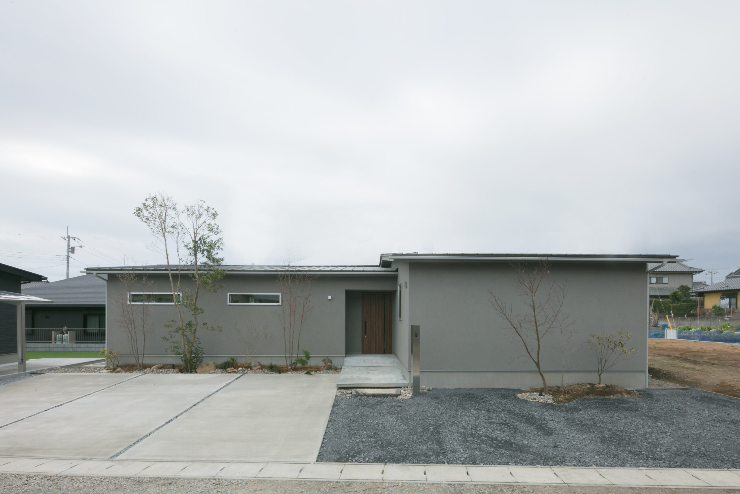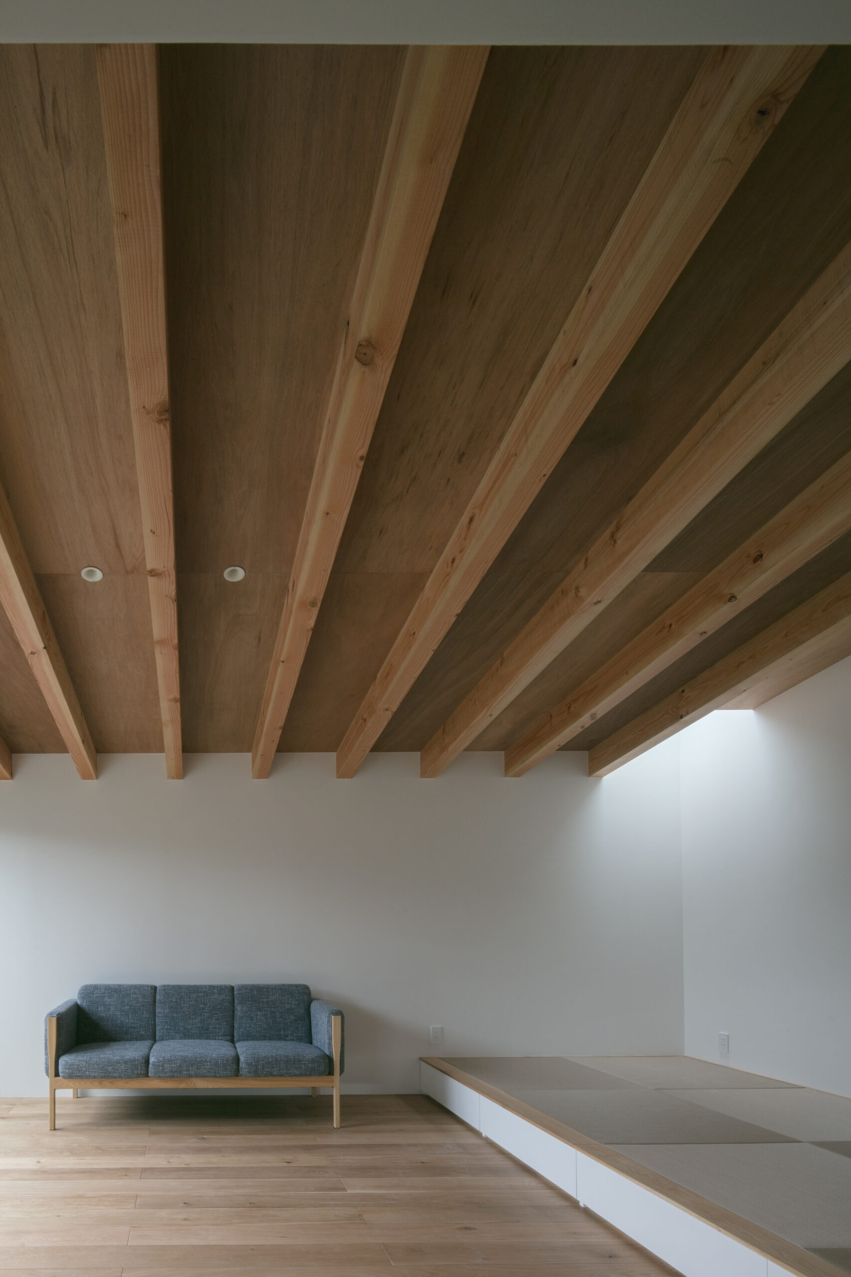 中庭から届く光と、やわらかく広がる陰影。木の表情が空間に奥行きを与え、季節の移ろいを静かに感じられる平屋の住まい。穏やかな気配の中で、日常を丁寧に重ねていく家です。