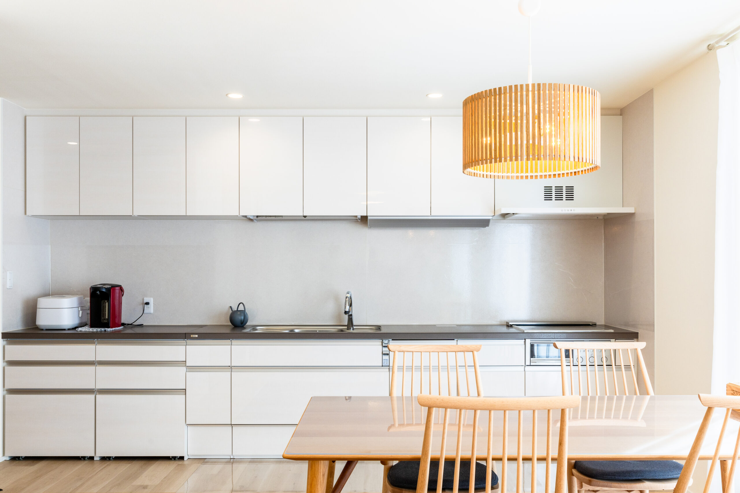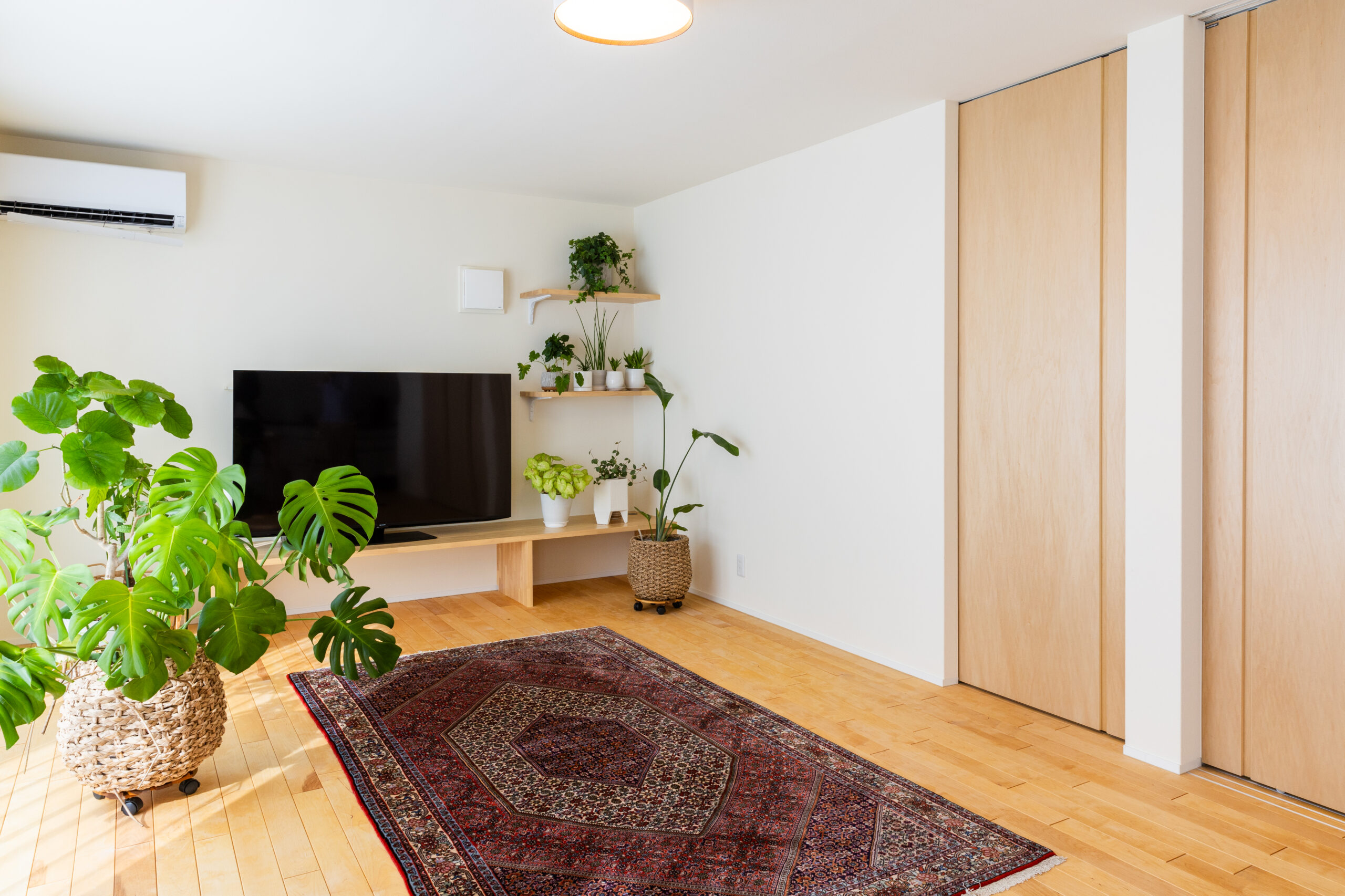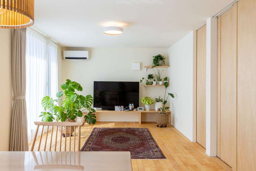 高気密・高断熱の性能を備えた平屋の住まい。大きな窓から光がたっぷり入り、家全体が明るく快適な温度環境を保ちます。短い家事動線や効率的な換気設備が暮らしをサポート。性能を数値で公開するワカバハウスの家づくりにより、安心して長く快適に暮らせる住まいを実現しました。