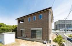 ダークブランカラーのガルバリウムがおしゃれで落ち着いた印象の外観。